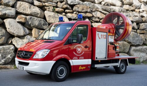 Einsatzgebiet: Stützpunktfahrzeug für die westliche Landeshälfte, Tunnelbränden und Belüften von großen Gebäuden und Hallen